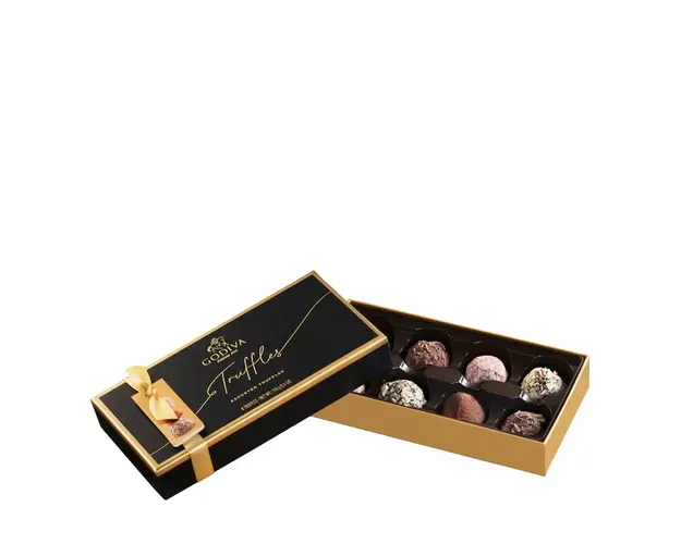 In 1968 Godiva a fost numit ciocolatierul oficial al casei regale Belgiene. Astazi, ei continua sa ofere ciocolata belgiana autentica, de calitate superioara. Incearca si tu deliciile ce au incantat regi si regine! Rasfat pentru fanii ciocolatei, Trufele Asortate sunt un cadou perfect pentru iubitorii de ciocolata din intreaga lume. Aceste trufe sunt recunoscute pentru calitatea lor premium si gustul exceptional, fiind o adevarata capodopera a artei ciocolatierilor. Produsul cu denumirea Assortefd truffles 110 gr face parte din brandul Roial, se afla in categoria Dulciuri si subcategoria