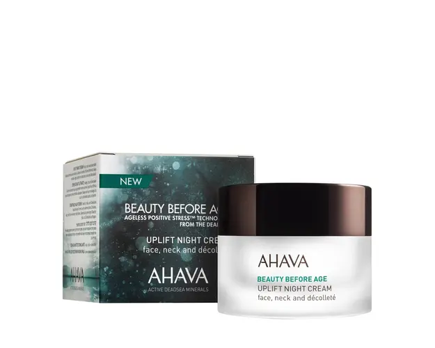 Ahava este un brand ce cuprinde o varietate de produse cosmetice care se bazeaza pe un mix inedit intre natura si stiinta. Aceasta crema de noapte cu efect de lifting este imbogatita cu tehnologia de fermentare a namolului din Marea Moarta cu Osmoter, amestecul exclusiv de minerale tot din Marea Moarta. Aceasta are efect de lifting, netezeste si defineste conturul fetei actionand inclusive pe pielea delicata a gatului si decolteului. In timp ce dormi tenul va deveni mai moale si mai elastic. Produsul este recomandat pentru tenul sensibil, testat impotriva alergiilor si nu contine parabeni. Produsul cu denumirea Beauty before age uplift night cream 50 ml face parte din brandul Aslavital, se afla in categoria Ingrijirea parului si subcategoria