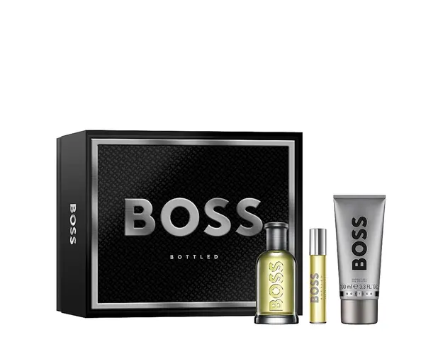 Latura abstracta a stilului Hugo Boss e perfect capturata in esenta Boss Bottled, lansata in 1998 si destinata barbatilor cat se poate de reali! Parfumul creat de Hugo Boss e in acelasi timp proaspat si intepator, puternic si masculin, in incitante esente lemnoase. Notele de mar si citrice sunt perfect echilibrate de insertii pasionale precum frunzele carnoase ale muscatelor si promitatoare precum scortisoara pe spuma unui cappuccino. Santalul, uleiul de vetiver si pretiosul cedru desavarsesc aceasta apa de toaleta. In plus, cu ocazia implinirii a zece ani de Boss Bottled, versiunea aniversara, Boss Nr.6, a fost cireasa de pe tort. Produsul cu denumirea Bottled set 210 ml face parte din brandul Hugo boss, se afla in categoria Parfumuri pentru barbati si subcategoria