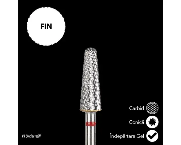 Capat Freza Carbid LUXORISE Conica, duritate medie #227 este compatibila cu orice model de freza de pe piata, avand dimensiune standard. Bitul pentru freza este ideal pentru modificarea si ingrijirea unghiilor, a pielii intarite . Freza este potrivita atat pentru manichiura, cat si pentru pedichiura, deoarece permite manevrarea cu precizie si faciliteaza stilizarea unghiilor. Finisajele la cele mai inalte standarde calitative garanteaza un confort inalt in timpul utilizarii. Caracteristici Diametru: 4,9 mm Lungime: 14,8 mm Lungime totala bit: 39mm Usor de curatat,dezinfectat si sterilizat. Produsul cu denumirea Capat Freza Carbid LUXORISE Conica, duritate medie #227 face parte din brandul Luxorise, se afla in categoria Aparatura unghii si subcategoria
