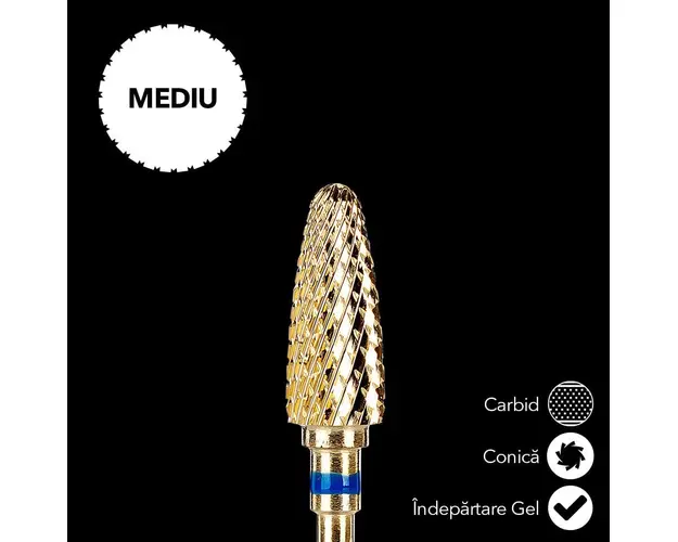 Capat Freza Carbid LUXORISE Conica, duritate medie #234 este compatibila cu orice model de freza de pe piata, avand dimensiune standard. Bitul pentru freza este ideal pentru modificarea si ingrijirea unghiilor naturale, a cuticulei si a pielii intarite . Freza este potrivita atat pentru manichiura, cat si pentru pedichiura, deoarece permite manevrarea cu precizie si faciliteaza stilizarea cuticulelor si a unghiilor. Finisajele la cele mai inalte standarde calitative garanteaza un confort inalt in timpul utilizarii. Caracteristici Diametru: 5,9 mm Lungime: 14,4mm Lungime totala bit: 52,3mm Usor de curatat,dezinfectat si sterilizat. Produsul cu denumirea Capat Freza Carbid LUXORISE Conica, duritate medie #234 face parte din brandul Luxorise, se afla in categoria Aparatura unghii si subcategoria