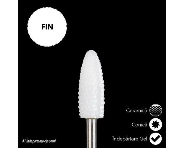 Capat Freza Ceramica LUXORISE Conica, fina #205 este compatibila cu orice model de freza de pe piata, avand dimensiune standard. Bitul pentru freza este ideal pentru suprapunerea tipsurilor, slefuirea unghiilor, scurtare sau crearea unei suprafete mate. Freza este potrivita atat pentru manichiura (indepartarea gelului sau acrilicului la intretinere), cat si pentru pedichiura (indepartarea pielii intarite). Finisajele la cele mai inalte standarde calitative garanteaza un confort inalt in timpul utilizarii. Caracteristici Diametru: 6 mm Lungime: 15,25 mm Lungime totala bit: 49,9 mm Usor de curatat,dezinfectat si sterilizat. Produsul cu denumirea Capat Freza Ceramica LUXORISE Conica, fina #205 face parte din brandul Luxorise, se afla in categoria Aparatura unghii si subcategoria