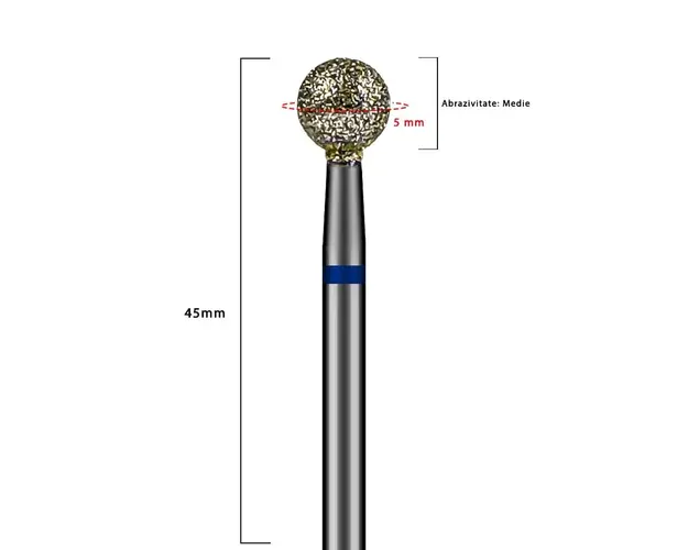 Capat Freza Sfera Diamantat Albastru, LUXORISE este un instrument esential pentru tehnicienii de unghii, conceput pentru indepartarea precisa si eficienta a cuticulelor de pe placa unghiala. Realizat din materiale de calitate, bitul ofera o performanta superioara si o durabilitate remarcabila. Bitul are o duritate medie si poate fi utilizat atat in tehnica dry cat si in cea wet. Este potrivit pentru curatarea cuticulei, netezirea faldurilor laterale ale unghiilor, eliminarea pielii moarte, lustruirea si matuirea unghiei naturale.Poate fi utilizat atat pentru manichiura cat si pentru pedichiura. Capat Freza Sfera Diamantat Albastru, LUXORISE este potrivit atat pentru incepatori cat si pentru tehnicienii cu experienta. Caracteristici Diametru: 5 mm Lungime totala bit: 45mm Abrazivitate: Medie Usor de curatat, dezinfectat si sterilizat. Produsul cu denumirea Capat Freza Sfera Diamantat Albastru, LUXORISE face parte din brandul Luxorise, se afla in categoria Aparatura unghii si subcategoria