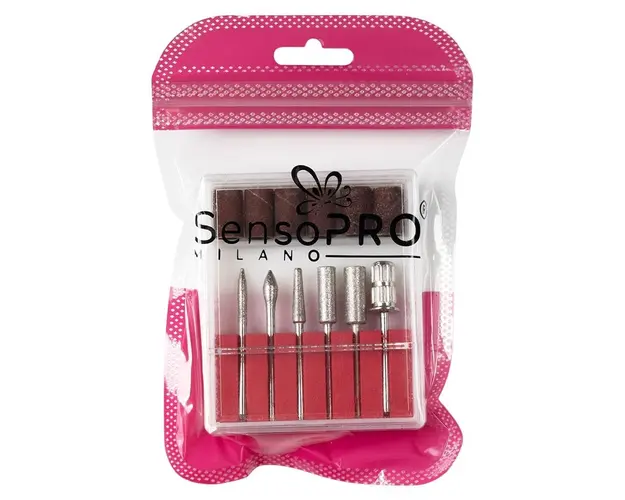 Capete Freza SensoPRO Milano, set 6 buc pentru pila electrica de unghii - format din 5 capete de freza, 6 inele abrazive si un suport pentru acestea. Contine capete de lucru necesare pentru stilizarea cuticulelor, realizarea unghiilor false, precum si pentru indepartarea gelului si a ojei semipermanente. Produsul cu denumirea Capete Freza SensoPRO Milano, set 6 buc face parte din brandul Sensopro milano, se afla in categoria Aparatura unghii si subcategoria