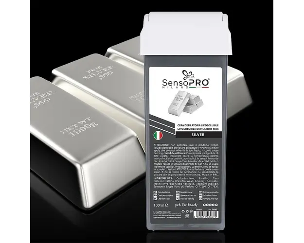 Ceara Cartus SensoPRO Milano, Silver 100ml asigura o epilare eficienta, sigura si fara a crea senzatia de disconfort! Ceara de unica folosinta elimina parul nedorit in mod delicat si este potrivita pentru toate zonele corpului. Epilarea cu rezerva de ceara ofera o piele catifelata cu un rezultat de pana la 4 saptamani. Mod de utilizare: ✅ 1. Incepeti prin curatarea pielii cu Lotiune inainte de Epilare SensoPRO Milano . Asigurati-va ca pielea este complet uscata inainte de aplicarea cerii. ✅ 2. Introduceti rezerva de ceara intr-un incalzitor potrivit si apoi conectati incalzitorul la priza. ✅ 3. Asteptati 20-30 de minute pentru ca ceara sa fie topita complet (in cazul incalzitoarelor fara suport, este recomandata deconectarea de la priza in momentul aplicarii cerii pe piele). Rezerva de ceara contine un roll-on detasabil. Inainte de aplicare, asigurati-va ca acest roll-on este fixat bine. Distribuiti uniform ceara pe roll-on cu ajutorul unei benzi de epilare, trecand de 3-4 ori cu roll-on-ul peste aceasta pentru a asigura o aplicare uniforma. ✅ 4. Asigurati-va ca temperatura cerii este confortabila pentru piele. Puteti face un test pe o mica portiune a pielii pentru a evita arsurile. ✅ 5. Intindeti ceara pe zona dorita in directia de crestere a firelor de par, aplicand un strat subtire si uniform pentru a asigura o epilare eficienta (in cazul in care ceara a inceput sa se raceasca/intareasca, reconectati incalzitorul la priza pentru cateva minute pana cand ceara ajunge la temperatura dorita). ✅ 6. Aplicati imediat o banda de epilare deasupra cerii (lasand loc de prindere). Presati usor si apoi trageti banda rapid in sens invers cresterii firelor de par. Repetati acest proces pe toate portiunile de piele pe care doriti sa le epilati. ✅ 7. Aplicati Ulei dupa Epilare pentru indepartarea resturilor de ceara si pentru a calma pielea. Evitati expunerea la soare sau la bai fierbinti timp de cateva ore dupa epilare pentru a preveni iritatiile suplimentare. Ceara se foloseste exclusiv pentru uz extern. A nu se aplica pe piele sensibila, afectata de leziuni sau pe zone sensibile. A nu se lasa la indemana copiilor . A se evita supraincalzirea. Se recomanda incalzirea precauta. ATENTIE: foarte fierbinte, poate cauza arsuri! Conditii de pastrare: Nu lasati cartusul de ceara deschis si nefolosit pentru perioade mari de timp. A se pastra in spatii reci, uscate si aerisite, ferite de lumina directa a soarelui, a umezelii , a materialelor cu potential agresiv, eventuale lovituri, zgarieturi sau deformari. Bucura-te de o epilare rapida si de calitate cu Ceara Cartus SensoPRO Milano, Silver 100ml! Produsul cu denumirea Ceara Cartus SensoPRO Milano, Silver 100ml face parte din brandul Sensopro milano, se afla in categoria Epilare si subcategoria