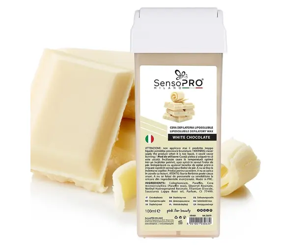 Ceara Cartus SensoPRO Milano, Raspberry 100ml asigura o epilare eficienta, sigura si fara a crea senzatia de disconfort! Ceara de unica folosinta elimina parul nedorit in mod delicat si este potrivita pentru toate zonele corpului. Ceara pe baza de extract de zmeura nu agreseaza pielea, ci are rolul de a hidrata si de calma pielea. Epilarea cu rezerva de ceara ofera o piele catifelata cu un rezultat de pana la 4 saptamani. Datorita ingredientelor, ceara de epilat este potrivita tuturor tipurilor de piele, inclusiv pentru cea sensibila. Forma rezervei asigura o manevrare usoara, astfel poate fi utilizata atat in saloanele profesionale, cat si in intimitatea casei. Mod de utilizare: ✅ 1. Incepeti prin curatarea pielii cu Lotiune inainte de Epilare SensoPRO Milano . Asigurati-va ca pielea este complet uscata inainte de aplicarea cerii. ✅ 2. Introduceti rezerva de ceara intr-un incalzitor potrivit si apoi conectati incalzitorul la priza. ✅ 3. Asteptati 20-30 de minute pentru ca ceara sa fie topita complet (in cazul incalzitoarelor fara suport, este recomandata deconectarea de la priza in momentul aplicarii cerii pe piele). Rezerva de ceara contine un roll-on detasabil. Inainte de aplicare, asigurati-va ca acest roll-on este fixat bine. Distribuiti uniform ceara pe roll-on cu ajutorul unei benzi de epilare, trecand de 3-4 ori cu roll-on-ul peste aceasta pentru a asigura o aplicare uniforma. ✅ 4. Asigurati-va ca temperatura cerii este confortabila pentru piele. Puteti face un test pe o mica portiune a pielii pentru a evita arsurile. ✅ 5. Intindeti ceara pe zona dorita in directia de crestere a firelor de par, aplicand un strat subtire si uniform pentru a asigura o epilare eficienta (in cazul in care ceara a inceput sa se raceasca/intareasca, reconectati incalzitorul la priza pentru cateva minute pana cand ceara ajunge la temperatura dorita). ✅ 6. Aplicati imediat o banda de epilare deasupra cerii (lasand loc de prindere). Presati usor si apoi trageti banda rapid in sens invers cresterii firelor de par. Repetati acest proces pe toate portiunile de piele pe care doriti sa le epilati. ✅ 7. Aplicati Ulei dupa Epilare pentru indepartarea resturilor de ceara si pentru a calma pielea. Evitati expunerea la soare sau la bai fierbinti timp de cateva ore dupa epilare pentru a preveni iritatiile suplimentare. Ceara se foloseste exclusiv pentru uz extern. A nu se aplica pe piele sensibila, afectata de leziuni sau pe zone sensibile. A nu se lasa la indemana copiilor . A se evita supraincalzirea. Se recomanda incalzirea precauta. ATENTIE: foarte fierbinte, poate cauza arsuri! Conditii de pastrare: Nu lasati cartusul de ceara deschis si nefolosit pentru perioade mari de timp. A se pastra in spatii reci, uscate si aerisite, ferite de lumina directa a soarelui, a umezelii , a materialelor cu potential agresiv, eventuale lovituri, zgarieturi sau deformari. Bucura-te de o epilare rapida si de calitate cu Ceara Cartus SensoPRO Milano, Raspberry 100 Produsul cu denumirea Ceara Cartus SensoPRO Milano, White Chocolate 100ml face parte din brandul Sensopro milano, se afla in categoria Epilare si subcategoria