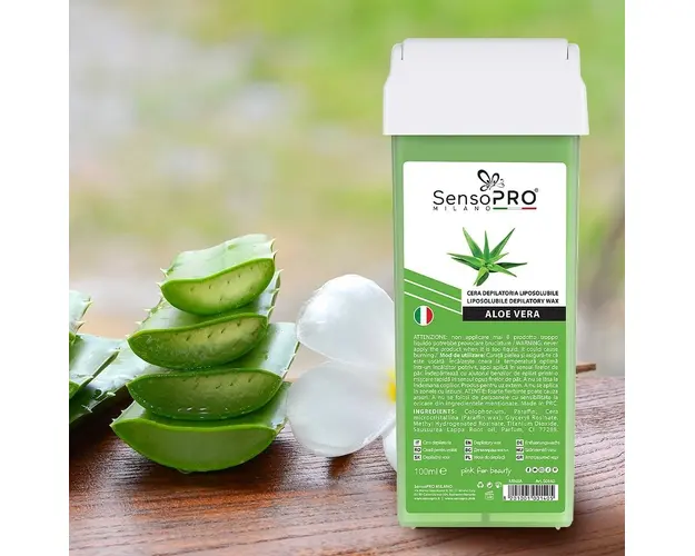 Ceara Epilat Unica Folosinta SensoPRO Milano, Rezerva Aloe 100 ml asigura o epilare eficienta, sigura si fara a crea senzatia de disconfort! Ceara de unica folosinta elimina parul nedorit in mod delicat si este potrivita pentru toate zonele corpului. Ceara pe baza de Aloe Vera nu agreseaza pielea, ci are rolul de a hidrata si de calma pielea. Epilarea cu rezerva de ceara ofera o piele catifelata cu un rezultat de pana la 4 saptamani. Datorita ingredientelor, ceara de epilat este potrivita tuturor tipurilor de piele, inclusiv pentru cea sensibila. Forma rezervei asigura o manevrare usoara, astfel poate fi utilizata atat in saloanele profesionale, cat si in intimitatea casei. Mod de utilizare: ✅ 1. Incepeti prin curatarea pielii cu Lotiune inainte de Epilare SensoPRO Milano . Asigurati-va ca pielea este complet uscata inainte de aplicarea cerii. ✅ 2. Introduceti rezerva de ceara intr-un incalzitor potrivit si apoi conectati incalzitorul la priza. ✅ 3. Asteptati 20-30 de minute pentru ca ceara sa fie topita complet (in cazul incalzitoarelor fara suport, este recomandata deconectarea de la priza in momentul aplicarii cerii pe piele). Rezerva de ceara contine un roll-on detasabil. Inainte de aplicare, asigurati-va ca acest roll-on este fixat bine. Distribuiti uniform ceara pe roll-on cu ajutorul unei benzi de epilare, trecand de 3-4 ori cu roll-on-ul peste aceasta pentru a asigura o aplicare uniforma. ✅ 4. Asigurati-va ca temperatura cerii este confortabila pentru piele. Puteti face un test pe o mica portiune a pielii pentru a evita arsurile. ✅ 5. Intindeti ceara pe zona dorita in directia de crestere a firelor de par, aplicand un strat subtire si uniform pentru a asigura o epilare eficienta (in cazul in care ceara a inceput sa se raceasca/intareasca, reconectati incalzitorul la priza pentru cateva minute pana cand ceara ajunge la temperatura dorita). ✅ 6. Aplicati imediat o banda de epilare deasupra cerii (lasand loc de prindere). Presati usor si apoi trageti banda rapid in sens invers cresterii firelor de par. Repetati acest proces pe toate portiunile de piele pe care doriti sa le epilati. ✅ 7. Aplicati Ulei dupa Epilare pentru indepartarea resturilor de ceara si pentru a calma pielea. Evitati expunerea la soare sau la bai fierbinti timp de cateva ore dupa epilare pentru a preveni iritatiile suplimentare. Ceara se foloseste exclusiv pentru uz extern. A nu se aplica pe piele sensibila, afectata de leziuni sau pe zone sensibile. A nu se lasa la indemana copiilor . A se evita supraincalzirea. Se recomanda incalzirea precauta. ATENTIE: foarte fierbinte, poate cauza arsuri! Conditii de pastrare: Nu lasati cartusul de ceara deschis si nefolosit pentru perioade mari de timp. A se pastra in spatii reci, uscate si aerisite, ferite de lumina directa a soarelui, a umezelii , a materialelor cu potential agresiv, eventuale lovituri, zgarieturi sau deformari. Bucura-te de o epilare rapida si de calitate cu Ceara Epilat Unica Folosinta SensoPRO Italia Rezerva Aloe, 100ml ! Produsul cu denumirea Ceara Epilat Unica Folosinta SensoPRO Milano, Rezerva Aloe 100 ml face parte din brandul Sensopro milano, se afla in categoria Epilare si subcategoria