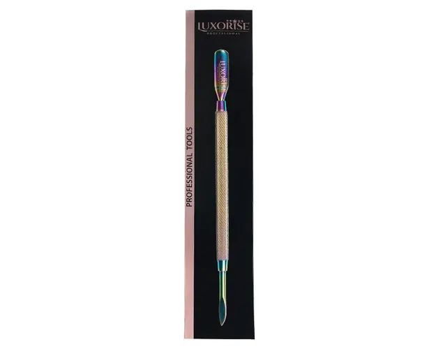 Chiureta Cuticule cu 2 Capete, Rainbow #01 - LUXORISE este realizat din otel inoxidabil. Accesoriul are doua capete de lucru: unul rotunjit, pentru impingerea cuticulelor si unul pentru zonele sensibile si mai putin accesibile ale unghiei. Manerul special al instrumentului este realizat din otel inoxidabil. In acest fel, vei putea manevra cu usurinta instrumentul atunci cand iti faci manichiura, fara ca acesta sa alunece. Zona cuticulelor se curata cu usurinta, fara pericolul de a taia sau zgaria pielea. Retineti, impingerea corecta si curatarea prealabila a zonei cuticulelor impiedica desprinderea gelului si aparitia micozelor, dar totodata ofera si un aspect ingrijit oricarei manichiuri. Produsul cu denumirea Chiureta Cuticule cu 2 Capete, Rainbow #01 - LUXORISE face parte din brandul Luxorise, se afla in categoria Aparatura unghii si subcategoria