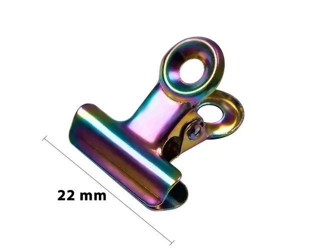 Cu ajutorul acestui Clips unghii metalic pentru curba C, LUXORISE Rainbow 22 mm vei reusi sa iti completezi kitul de manichiura. Clipsul rezistent poate fi folosit pentru realizarea curbei C atunci cand ajungi la etapa de constructie a unghiei false pe sablon. Aceste clipsuri se aplica pe fiecare deget in parte si se lasa sa actioneze pentru 2 minute. Mai mult decat atat, acest clips poate fi utilizat in tehnica de lucru cu acryl, dar si cu gel. Dimensiune: 22 mm Produsul cu denumirea Clips unghii metalic pentru curba C, LUXORISE Rainbow 22 mm face parte din brandul Luxorise, se afla in categoria Aparatura unghii si subcategoria