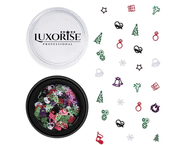 Sarbatoare pe unghiile tale! Decoratiuni Unghii LUXORISE, Christmas Joy sunt ornamentele perfecte pentru o manichiura de sezon, usor de realizat. Cutiuta contine Decoratiuni unghii ce se incadreaza perfect pe suprafata unghiilor. Asorteaza-le cu alte accesorii de nail art cum ar fi, stickere, folii de transfer si realizeaza manichiuri cu adevarat impresionante. Structura lor le face usor de utilizat atat cu lac de unghii, cat si cu gel UV, oja semipermanenta si acryl. Le aplici simplu in ordinea dorita pe un strat color care inca nu e complet uscat, intaresti stratul si finalizezi cu top coat pentru rezistenta. Produsul cu denumirea Decoratiuni Unghii LUXORISE, Christmas Joy face parte din brandul Luxorise, se afla in categoria Nail art si subcategoria