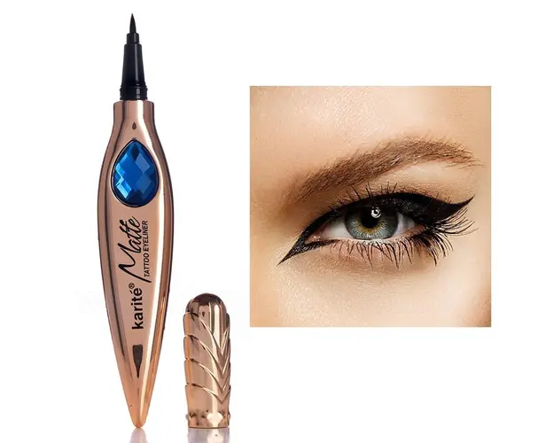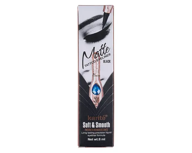 Eyeliner Lichid Karite Sapphire traseaza cele mai dramatice contururi de ochi cu o precizie de neegalat! Produsul atrage instant privirea datorita ambalajului de bijuterie aurie decorata cu o piatra pretioasa albastra de safir. Eyelinerul waterproof elibereaza intensitatea negrului printr-un varf ascutit ce creeaza cele mai clare, pronuntate si intense linii de contur. Tusul de ochi va aluneca lin de-a lungul pleoapei pentru un maxim de precizie. Produsul are uscare mata, iar odata ce s-a uscat complet, nu se intinde si nu crapa pe pleoape. Eyeliner-ul cu precizia unui lichid si textura usoara a unui gel are o formula inovatoare. Tusul de ochi tip carioca ascunde o formula moderna ce asigura o durata indelungata a liniilor tale de contur. Astfel vei obtine un machiaj profesional de ochi de pisica simetric, dramatic si rezistent. Alege Eyeliner Lichid Karite Sapphire pentru a obtine un contur de lux al ochilor cu o precizie uimitoare! Cantitate: 8 ml Produsul cu denumirea Eyeliner Lichid Karite Sapphire face parte din brandul Kabinett, se afla in categoria Machiaj si subcategoria