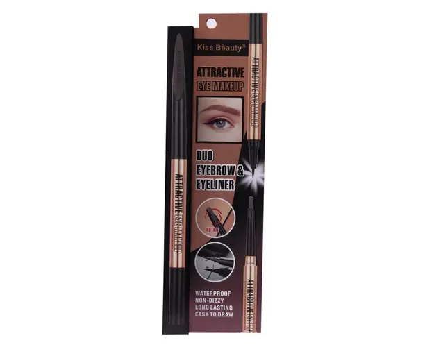 Eyeliner tip Carioca & Creion Sprancene Retractabil 2 in 1, Kiss Beauty 03