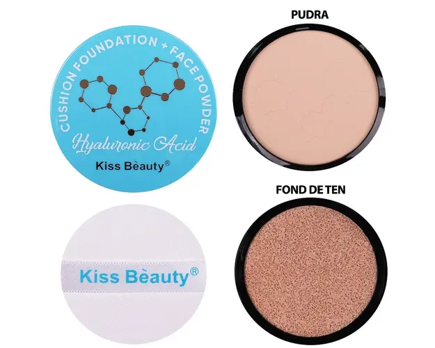 Fond de Ten Cushion Foundation & Pudra Fata Kiss Beauty, Hyaluronic Acid 01