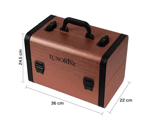 Geanta Produse Cosmetice Beautify Gold - LUXORISE este ideala pentru pastrarea si transportul produselor de manichiura. Beautify Gold este impartita in compartimente si detine un spatiu generos. Cu un design minimalist, geanta este practica si perfecta pentru profesionistii in miscare. Avantaje Geanta Beautify Gold - Materiale calitate superioara - Depozitare accesorii manichiura / produse cosmetice - Compartimentare ergonomica - Transportul produselor in siguranta - Impermeabila si rezistenta - Interior & Exterior usor de curatat Dimensiuni exterioare: 36 x 22 x 24.5 cm Dimensiuni sertare deschise: 92 cm Dimensiuni interioare: 34.5 x 20 x 11.5 cm Dimensiune sertar cu separatoare: 19 x 16 x 5.5 cm Dimensiuni sertare fara separatoare: 19 x 16 x 2.5 cm Produsul cu denumirea Geanta Produse Cosmetice Beautify Gold - LUXORISE face parte din brandul Luxorise, se afla in categoria Aparatura unghii si subcategoria