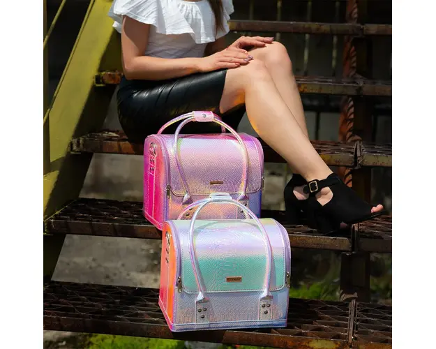 Geanta Produse Cosmetice Magic Mermaid - LUXORISE este ideala pentru pastrarea si transportul produselor cosmetice. Magic Holo este o geanta eleganta, stilata ce surprinde prin materialul holografic ce reflecta diverse nuante de mov, albastru, galben, roz. Compartimentarea si designul minimalist fac ca aceasta geanta sa fie practica si perfecta pentru profesionistii in miscare. Datorita bretelei ajustabile, poate fi purtata ca geanta de mana sau pe umar. Avantaje Magic Holo: - Materiale calitate superioara - Depozitare produse cosmetice - Compartimentare ergonomica - Transportul produselor in siguranta - Impermeabila si rezistenta - Interior & Exterior usor de curatat Produsul cu denumirea Geanta Produse Cosmetice Magic Holo Mermaid - LUXORISE face parte din brandul Luxorise, se afla in categoria Genti cosmetice si subcategoria Troler