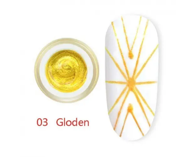 Gel uv canni spider special creat pentru a trasa linii fine Se usuca in lampa uv in 120-180 secunde sau in lampa led in 30-60 de secunde. Tipul de uscare difera in functie de nuanta. Valabilitate 12luni de la deschidere. Pretul este pe bucata. Produsul cu denumirea Gel UV Spider CANNI 03 Golden face parte din brandul Canni, se afla in categoria Gel spider-geometric 3d 4d si subcategoria