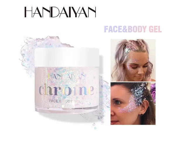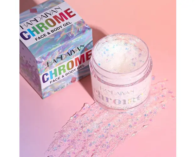 Glitter Gel Fata & Corp Chrome Handaiyan #01 poate fi o modalitate distractiva de a adauga stralucire aspectului tau. Produsul contine ingrediente naturale, are nuanta cameleonica si poate fi utilizat pentru a accentua zonele dorite ale fetei si corpului sau pentru a crea efecte artistice si stralucitoare. Glitter Gel Fata & Corp Chrome Handaiyan #01 nu contine ingrediente iritante sau nocive. Are textura de gel, contine particule foarte stralucitoare si e ste rezistent la transfer. Aplica gelul cu sclipici cu degetele sau cu o pensula, in functie de preferintele tale, asteapta cateva momente pana se usuca, iar rezultatul va fi un aspect stralucitor si plin de viata. Gramaj: 32g Produsul cu denumirea Glitter Gel Fata & Corp Chrome Handaiyan #01 face parte din brandul Handaiyan, se afla in categoria Machiaj si subcategoria