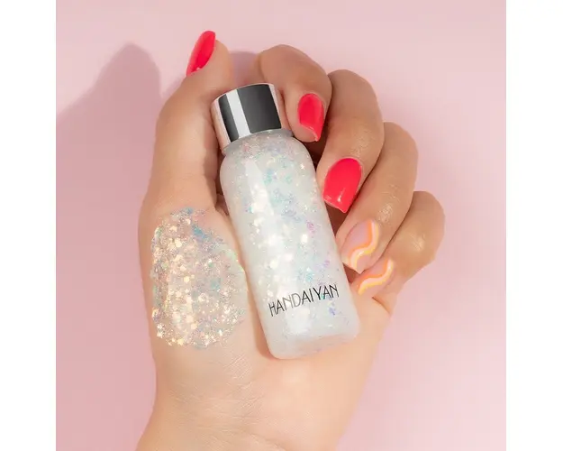 Glitter Gel Fata & Corp Handaiyan #09 iti aduce sclipiri irezistibile pe piele, indiferent daca alegi sa il folosesti pe fata sau pe corp. Textura este gel si contine particule foarte stralucitoare si paiete care reflecta lumina in mii de scantei aprinse. Cu ajutorul lui poti creea make-up-uri avangardiste si versatile. Acest produs este de nelipsit in modele de machiaj pentru evenimente speciale, nunti, petreceri si alte momente magice. Este rezistent la transfer, iar ingredientele din care este confectionat nu sunt nocive pentru piele. Este ideal atat in mainile profesionistilor, cat si a tuturor iubitoarelor de frumos. Acesta ofera stralucire puternica de lunga durata si un machiaj ce iese din anonimat. Glitter-ul Handaiyan se poate aplica pe pleoape, direct pe alte farduri, peste baze de machiaj colorate, pe buze dupa aplicarea rujului, pe obraji sau pe corp. Poti deveni vedeta oricarei petreceri cu Glitter Gel Fata & Corp Handaiyan #09! Produsul cu denumirea Glitter Gel Fata & Corp Handaiyan #09 face parte din brandul , se afla in categoria Machiaj si subcategoria