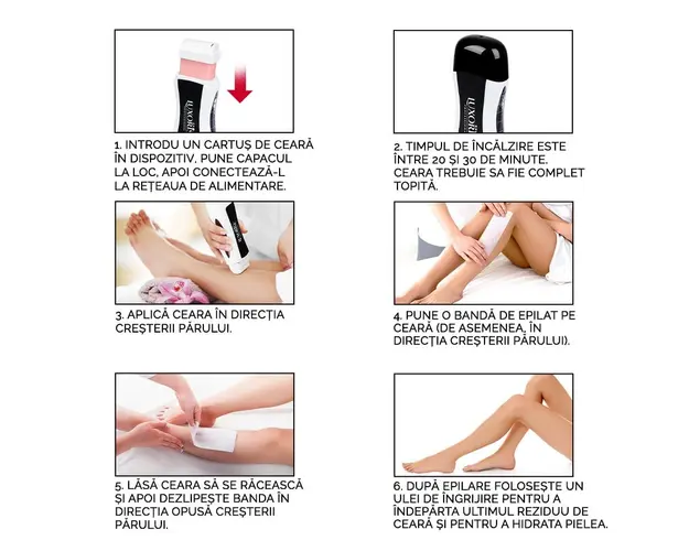 Incalzitor ceara Ultimate Care - LUXORISE este folosit pentru incalzirea rezervelor de ceara de unica folosinta. Incalzitorul reprezinta solutia ideala pentru o epilare rapida si usoara. Rezerva de ceara se va incalzi in cateva minute, iar ceara va ajunge la temperatura optima pentru folosire. Specificatii tehnice: Model: LUX-175 Putere: 40 W Culoare: Alb & Negru Tensiune alimentare: 220-240V 50Hz Material: ABS Dimensiune: 20 x 4 x 8 cm Greutate: 147 g Se beneficiaza de garantia legala de conformitate asa cum aceasta este reglementata de dispozitiile Legii nr. 296/2004 privind Codul Consumului, cu modificarile si completarile ulterioare coroborate cu dispozitiile OUG nr. 140/2021 privind vanzarea produselor si garantiile asociate acestora, cu modificarile si completarile ulterioare. Produsul cu denumirea Incalzitor Ceara Ultimate Care - LUXORISE face parte din brandul Luxorise, se afla in categoria Epilare si subcategoria