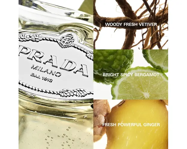 "Reprezentand esenta brandului Prada, Les Infusions au evoluat dintr-un simt puternic al naturaletei din procesul de infuzare. Fiecare denota o sugestie efemera si intima a intensitatii izvorate din natura. Proaspat, picant si lemnos, cu atingerea impresionanta a Vetiverului. O confruntare eleganta a traditiei si modernitatii cu o interpretare poetica, Vetiver aminteste de un tip de verde foarte fraged. Note: Bergamota italiana, Mandarina italiana, Tei, Cardamom, Neroli tunisian, Trandafir din Turcia, Tarhon, Ghimbir, Vetiver" Produsul cu denumirea Infusion de vetiver 100 ml face parte din brandul Prima, se afla in categoria Parfumuri pentru barbati si subcategoria