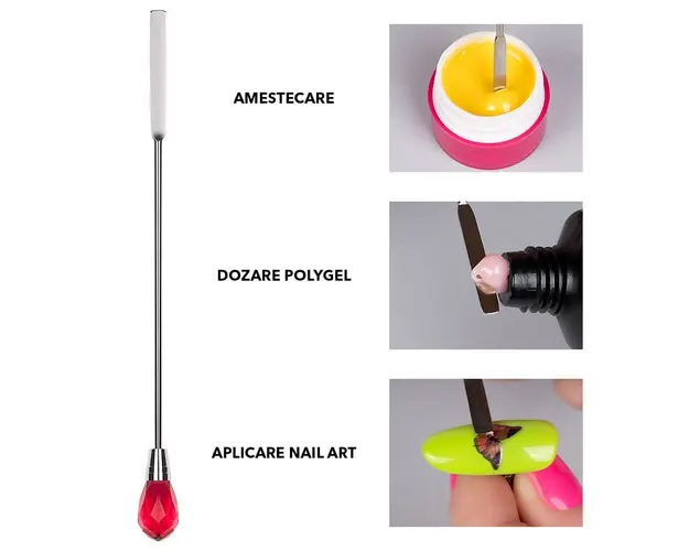 Instrument Manichiura Mixare & Decorare SensoPRO Milano, Crystal Pink - Spatula din otel inoxidabil este special pentru amestecarea gelului, nail art dar si pentru stilizare si indepartarea diverselor materiale de pe unghii. Forma speciala de spatula permite amestecarea gelului, pudrei acrylice, glitterului, pigmentilor etc. In acelasi timp, forma este perfecta pentru dozarea precisa a polygelului, stilizare si indepartarea surplusului de gel, oja nepolimerizata. Este un instrument multifunctional, perfect atat pentru amatori cat si pentru profesionisti. - Materiale calitate superioara - Utilizare multipla - Usor de curatat - Confortabil & usor de manipulat - Util pentru fixarea stickerelor, tatuajelor, foliilor de transfer - Util pentru dozare polygel Produsul cu denumirea Instrument Manichiura Mixare & Decorare SensoPRO Milano, Crystal Pink - Spatula face parte din brandul Sensopro milano, se afla in categoria Aparatura unghii si subcategoria