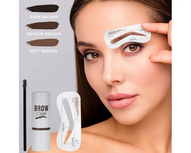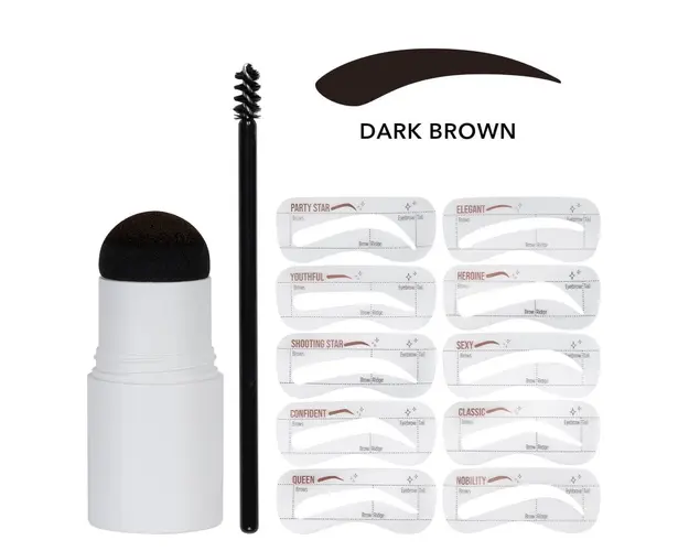 Kit Stampila Sprancene + Sabloane Kiahbeaute Brow Stamp #01 - Dark Brown
