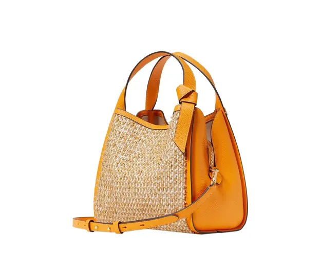 Kate Spade este un brand care s-a lansat in anul 1993 cu sase modele de genti, dar care in prezent ofera o gama larga de produse precum articole vestimentare, incaltaminte, bijuterii si articole pentru decorarea locuintei. Principiile brand-ului ii definesc stilul unic, modern si sofisticat care isi propune sa ofere un sentiment de fericire prin fiecare produs creat. Geanta Knott, realizata din paie de gene, iti ofera versatilitate maxima cu o curea de umar optionala si reglabila. Astfel, poti alege sa o porti pe umar sau sa o arunci elegant peste umar atunci cand esti ocupata. Cu buzunar cu fermoar, buzunar cu capse si compartiment central cu fermoar, poti organiza eficient obiectele personale. Produsul cu denumirea Knott raffia tweed medium crossbody tote face parte din brandul Spaderm, se afla in categoria Genti si subcategoria