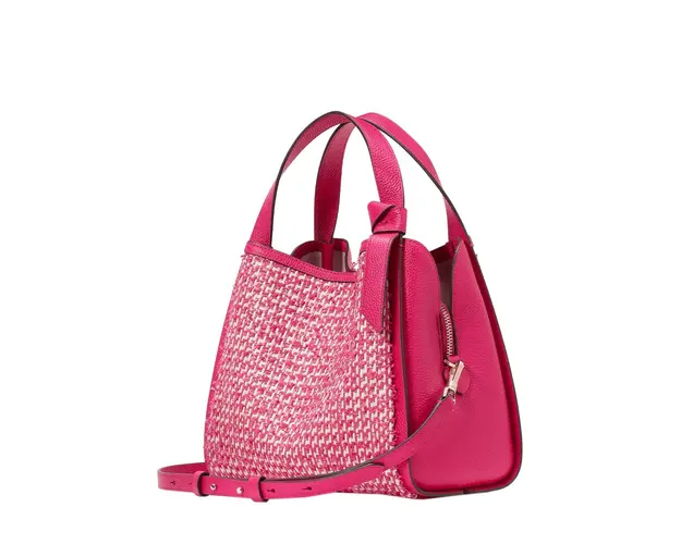 Kate Spade este un brand care s-a lansat in anul 1993 cu sase modele de genti, dar care in prezent ofera o gama larga de produse precum articole vestimentare, incaltaminte, bijuterii si articole pentru decorarea locuintei. Principiile brand-ului ii definesc stilul unic, modern si sofisticat care isi propune sa ofere un sentiment de fericire prin fiecare produs creat. Geanta Knott, realizata din paie de gene, iti ofera versatilitate maxima cu o curea de umar optionala si reglabila. Astfel, poti alege sa o porti pe umar sau sa o arunci elegant peste umar atunci cand esti ocupata. Cu buzunar cu fermoar, buzunar cu capse si compartiment central cu fermoar, poti organiza eficient obiectele personale. Produsul cu denumirea Knott raffia tweed medium crossbody tote face parte din brandul Spaderm, se afla in categoria Genti si subcategoria