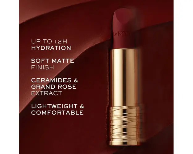 Lancôme, brand-ul de lux de frumusete cel mai de seama din lume, a fost infiintat in anul 1930 de catre Armand Petitjean. De mai bine de 80 de ani, Lancôme reprezinta un exemplu al frumusetii, dorind sa ajute femeile de pretutindeni sa se simta mai frumoase facandu-le mai fericite prin intermediul produselor inovatoare pe care le produc. L'Absolu Rouge Intimatte este un ruj cu efect mat ce ofera ingrijire buzelor, datorita ingredientelor precum extractele de trandafir si ceramide, asigurand un confort pe termen lung. Formula sa imbogatita cu pigmenti nu usuca buzele, rezultand o culoare senzuala cu finisaj mat. Simtul catifelat al acestui ruj creeaza o senzatie de imbratisare de lunga durata, redefinind astfel conceptul de ruj mat. Este incapsulat intr-o carcasa eleganta si feminina rose-gold, cu detalii fine ca de bijuterie: butonul in forma de trandafir, care la apasare, dezvaluie inelele aurii de dedesubt. Produsul cu denumirea L'absolu rouge intimatte lipstick 282 3 gr face parte din brandul Lancaster, se afla in categoria Machiaj si subcategoria