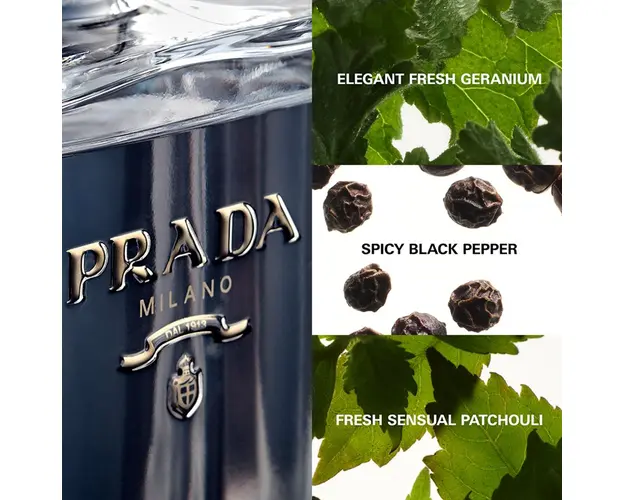 Chihlimbar si Iris se amesteca cu Ghimbir Rosu si Neroli. Notele verzi, fresh creeaza un contrast irezistibil si senzual pe o baza de lemn de santal. O nota florala persistenta, accentueaza senzatia de prospetime, in timp ce prezenta lemnului de santal atenueaza mirosurile de lemn de cedru si chipri. Aceasta noua interpretare a prospetimii vine intr-o sticla metalica de culoare argintie, cu piele Saffiano albastru pal, care poarta sigla originala Prada. Note: chihlimbar, iris, ghimbir, neroli, lemn de santal, lemn de cedru. Produsul cu denumirea L'homme prada 50 ml face parte din brandul Prima, se afla in categoria Parfumuri pentru barbati si subcategoria