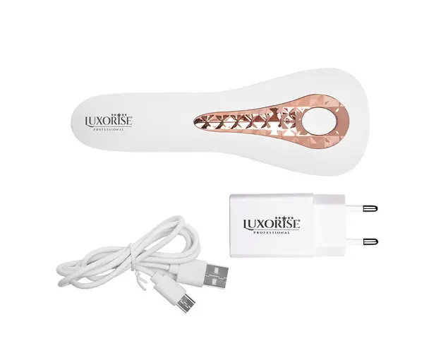 Lampa Profesionala UV LED Nail Art Elite cu Acumulator LUXORISE, Gold este dedicata profesionistilor pentru polimerizarea partiala a polygelui, gelului, gelului de pictura, decoratiunilor nail art dar si a altor produse ce necesita o uscare partiala in realizarea manichiurii. Lampa Nail Art Elite are un design minimalist eficient, este reincarcabila, usor de transportat si de utilizat atat pentru manichiuri cat si pentru pedichiuri. Manerul este confortabil, din material anti-alunecare. Specificatii tehnice: Putere: 18W Baterie reincarcabila: 1500mAh Timer: 60s Material: HQ Plastic Dimensiuni:17 x 6 x 3.5cm Culoare: Auriu Greutate: 67g Pachetul contine: 1 x Lampa UV LED 1 x Cablu & Incarcator 1 x Manual de utilizare Se beneficiaza de garantia legala de conformitate asa cum aceasta este reglementata de dispozitiile Legii nr. 296/2004 privind Codul Consumului, cu modificarile si completarile ulterioare coroborate cu dispozitiile OUG nr. 140/2021 privind vanzarea produselor si garantiile asociate acestora, cu modificarile si completarile ulterioare. Produsul cu denumirea Lampa Profesionala UV LED Nail Art Elite cu Acumulator LUXORISE, Gold face parte din brandul Luxorise, se afla in categoria Aparatura unghii si subcategoria