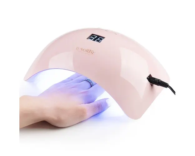 Lampa UV LED SUN8 PRO 48W - LUXORISE este o lampa cu Display Digital si LED-uri de tip Double Light LED (365nm + 405nm), culoare roz. Aceasta polimerizeaza manichiuri si pedichiuri realizate cu gel UV, polygel sau oja semipermanenta. Lampa pentru unghii cu gel porneste la apasarea butonului de timer 30s, 60s sau 99 secunde (low heat mode). Ea este dotata si cu senzor de prezenta. Atunci cand introduci mana in lampa, aceasta porneste automat timp de 99 secunde. Se poate vedea pe ecranul lampii cate secunde mai sunt pana la finalizare. Pachetul contine: 1 x Lampa LED 1 x Alimentator 1 x Manual utilizare Specificatii: Lampa UV LED are 21 LED-uri Putere maxima: 48W Tensiune alimentare 220-240V 50 Hz 1A Lampa UV LED are Dimensiune: 224x137x84 Lungime de unda: 365+405nm Lampa UV LED detine senzor activat la miscare Model: SUN8 PRO Culoare: Roz Respectati intotdeauna modul de utilizare. Mod de utilizare: 1. Conectati lampa la priza cu ajutorul cablului de alimentare. 2. Dupa aplicarea produselor care necesita polimerizare, introduceti mana in lampa pentru a o pornii cu ajutorul senzorului de miscare sau apasati unul dintre butoanele de timer: 30, 60, 99s (Low Heat Mode). Dupa apasarea butonului 99s lampa va intra automat in modul Low Heat si intensitatea luminii va creste treptat pentru a reduce senzatia de arsura in momentul polimerizarii. 3. Selectati timpul de uscare specific produselor utilizate. In momentul in care introduceti mana sub lampa asigurati-va ca unghiile sunt in lumina UV. NU iesiti cu unghiile in spatele lampii! ATENTIE! A nu se folosii de persoanele cu sensibilitate ! Se beneficiaza de garantia legala de conformitate asa cum aceasta este reglementata de dispozitiile Legii nr. 296/2004 privind Codul Consumului, cu modificarile si completarile ulterioare coroborate cu dispozitiile OUG nr. 140/2021 privind vanzarea produselor si garantiile asociate acestora, cu modificarile si completarile ulterioare. Produsul cu denumirea Lampa UV LED 48W SUN8 PRO - LUXORISE, Roz face parte din brandul Luxorise, se afla in categoria Aparatura unghii si subcategoria