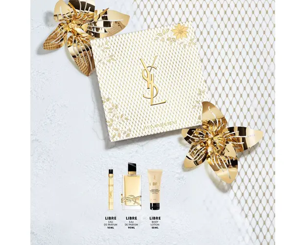 CELEBRATE IN GOLD Alatura-te YSL Beauty si paseste in calatoria acestui sezon de sarbatori. Acest set cadou, imbracat in nuante aurii unice, contine: - Libre Eau de Parfum 90 ml; - Libre Eau de Parfum 10 ml; - Libre Lotiune parfumata pentru corp 50 ml. Produsul cu denumirea Libre set 150 ml face parte din brandul Allwaves hair care, se afla in categoria Parfumuri pentru barbati si subcategoria
