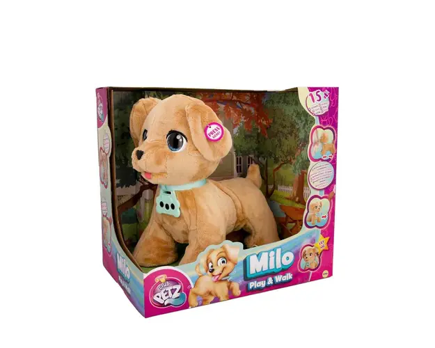 Catelusul interactiv Milo scoate o multime de sunete si actiuni care ii vor distra pe cei mici. Milo te poate insoti la plimbari atunci cand il tii de lesa, iar senzorii din diferite parti ale corpului lui vor raspunde comenzilor tale. Milo poate emite 15 sunete si are doua moduri de interactiune, joc si mers. Fiecare jucarie Milo vine cu un guler si o lesa care activeaza diferite functii. Produsul cu denumirea Milo face parte din brandul Cluse, se afla in categoria Jucarii si subcategoria