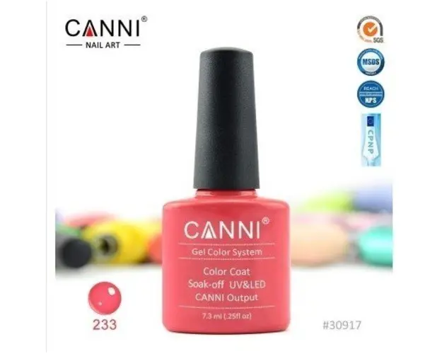 Oja Semipermanenta CANNI COLOR,incerca cele mai populare oje de pe piata din Romania Cantitate 7.3ml Necesita Baza si Top Coat Se usuca in lampa uv Neon sau Led Produsul cu denumirea Oja Semipermanenta CANNI 233 face parte din brandul Canni, se afla in categoria Oja semipermanenta si subcategoria