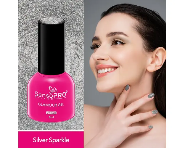 Oja Semipermanenta Glamour Gel SensoPRO Milano 8ml, Silver Sparkle #56