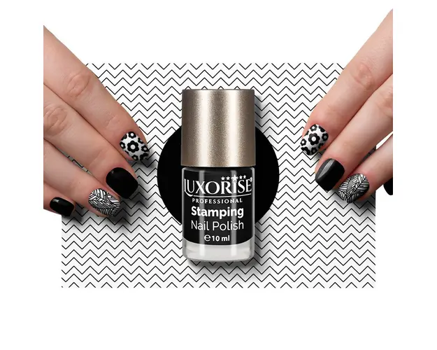 Oja Stampila Unghii LUXORISE, Artist - Black #02 este un produs nou, special creat pentru nail art. Se usuca rapid si este pigmentata, asigurand un efect rezistent si calitativ , in timp ce compozitia are o vascozitate ridicata datorita siliconului care ajuta la fixarea si imprimarea modelelor pe unghii. Tehnica de stampilare a unghiilor este folosita atat de profesionisti, cat si de amatori. Mod de aplicare: 1. Curata unghia si pregateste-o prin aplicarea primer-ului/gelului UV de constructie; 2. Aplica oja/Gelul UV colorat pe unghii; 3. Aplica un strat de Oja Stampila LUXORISE pe matrita; 4. Cu ajutorul racletei indeparteaza excesul de oja de pe model; 6. Apasa stampila pe modelul ales de pe matrita printr-o miscare simpla si aplica pe unghie; 7. Sigileaza manichiura la sfarsit cu un TopCoat. ATENTIE! Ai nevoie de o stampila de unghii si de cel putin o matrita cu modele pentru realizarea de modele cu aceasta oja. Produsul cu denumirea Oja Stampila Unghii LUXORISE, Artist - Black #02 face parte din brandul Luxorise, se afla in categoria Nail art si subcategoria