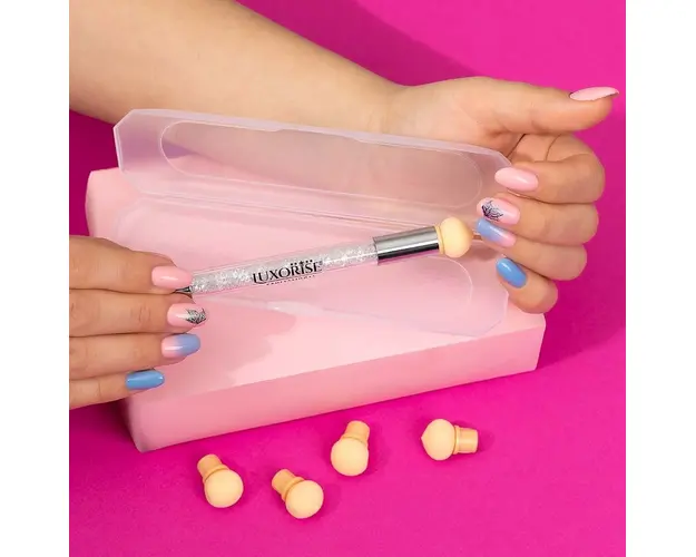 Pensula Baby Boomer cu Burete pentru Ombre +4 Rezerve, LUXORISE este ideal pentru realizarea modelelor de nail art originale si inedite. Cu ajutorul lui poti crea un efect de degrade intre 2 sau mai multe culori de oja, fiind folosit in general pentru Baby Boomer. Aceasta tehnica a devenit un trend in manichiura si se poate spune ca este un upgrade al french-ului, care poate fi fundalul perfect pentru orice tip de decoratiune. Textura buretilor este foarte fina, iar curatarea lor se poate face cu cleaner-ul pe care il folosesti de obicei. La final, se sterg cu un servetel din hartie. Se pot reutiliza doar cand sunt complet uscati. Pensula Baby Boomer cu Burete pentru Ombre +4 Rezerve, LUXORISE este usor de folosit, atat de profesionisti cat si de amatori, fiind la indemana oricui. Avantaje: - Nail Art: manichiuri ombre, realizare flori, aplicare pigment - Lavabile, refolosibile - Materiale calitate superioara - Utilizare multipla - Usor de folosit Setul contine: - 2 buc x Rezerve capat ascutit - 2 buc x Rezerve capat rotund Dimensiune: 15,5 cm Produsul cu denumirea Pensula Baby Boomer cu Burete pentru Ombre +4 Rezerve, LUXORISE face parte din brandul Luxorise, se afla in categoria Aparatura unghii si subcategoria