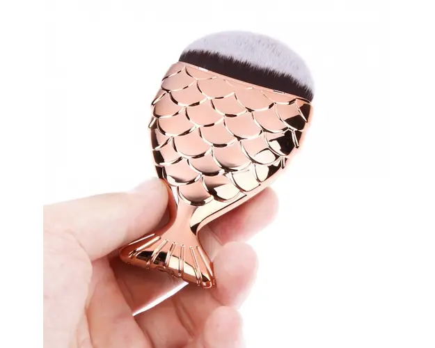 Pensula Machiaj Sirena c u coada in forma de peste este o pensula multifunctionala ce nu trebuie sa iti lipseasca din trusa! Este realizata din peri sintetici fini, moi, de lungime medie si poate fi folosita pentru aplicarea fondului de ten, pentru BB Cream, pudra si blush. Datorita caracteristicii Silky Soft, make-up-ul devine o experienta de lux, acopera in profunzime imperfectiunile, dand tenului un aspect natural si luminos. Design-ul pensulei multifunctionale tip mermaid este interesant si asigura o manuire usoara in momentul utilizarii. Aceasta pensula te ajuta sa pastrezi naturaletea machiajului tau, fara a lasa urme inestetice. Pensula este foarte deasa, realizata din par sintetic, foarte fin si moale. Poate fi folosita cu toate produsele tale preferate de machiaj. Pensula Machiaj Sirena vine in 3 culori diferite: Silver, Black si Gold. Pretul este pentru o bucata, va rugam sa va alegeti culoarea dorita cu ajutorul selectorului de sub pret. Produsul cu denumirea Pensula Machiaj Sirena - culoare la alegere face parte din brandul , se afla in categoria Machiaj si subcategoria