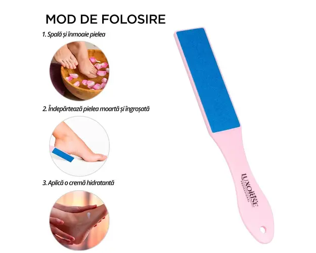 Pila de Calcaie Smooth Skin PRO - LUXORISE, Pink este realizata din materiale premium si este perfecta pentru indepartarea pielii uscate de pe calcaie. Cu un design modern, pila este usor de utilizat datorita manerului ergonomic ce asigura o prindere sigura si confortabila. Cele doua fete abrazive ofera rezultate impecabile. Avantaje Smooth Skin PRO: - Suprafata dubla - Design modern - Usor de curatat - Rezultate profesionale Produsul cu denumirea Pila de Calcaie Smooth Skin PRO - LUXORISE, Pink face parte din brandul Luxorise, se afla in categoria Aparatura unghii si subcategoria