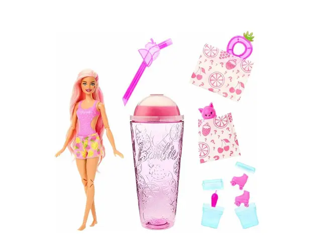 Barbie este o papusa lansata de brandul american de jucarii, Mattel, in 1959. A fost creata de femeia de afaceri Ruth Handler, care a folosit ca inspiratie o papusa germana pe nume Bild Lilli. Barbie este extrem de populara, este idolatrizata de generatii de fetite, este o eroina din desene animate si poate fi orice, de la un explorator la o printesa. Produsul cu denumirea Pop reveal strawberry face parte din brandul Barbicide, se afla in categoria Jucarii si subcategoria