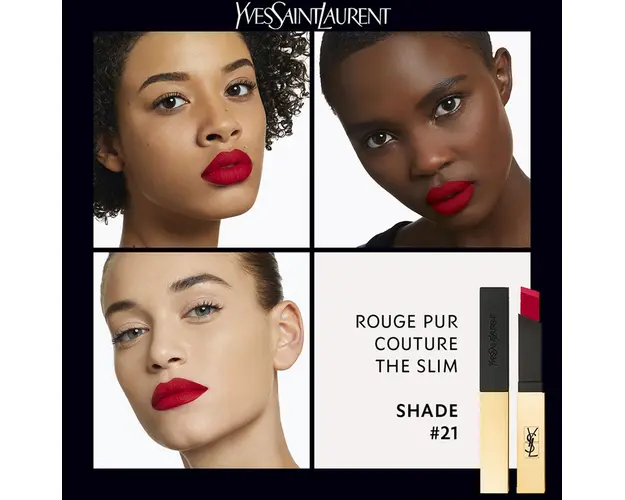 Rouge Pur Couture The Slim este rujul cu finisaj mat pentru un aspect couture, dar relaxat. Forma patrata, unica, asigura o aplicare precisa. Cel mai bun ruj mat YSL cu o acoperire completa, dar o textura cremoasa si confortabila. Tehnologia cu pigmenti micronizati ofera o matifiere si o culoare intense. Uleiurile emoliente si nivelul ridicat de pigmenti contribuie la confortul si rezistenta pe buze. Produsul cu denumirea Rouge pur couture the slim 21 2.20 gr face parte din brandul Allwaves hair care, se afla in categoria Machiaj si subcategoria