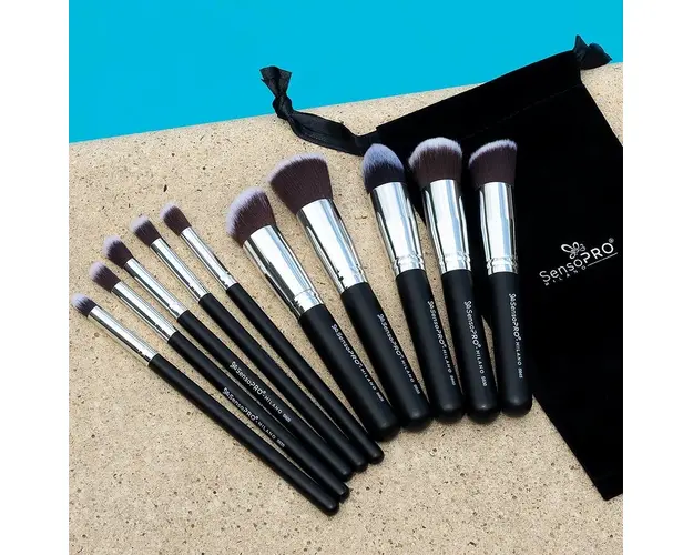 Set 10 Pensule Machiaj Profesionale SensoPRO Milano, Classy Black + CADOU