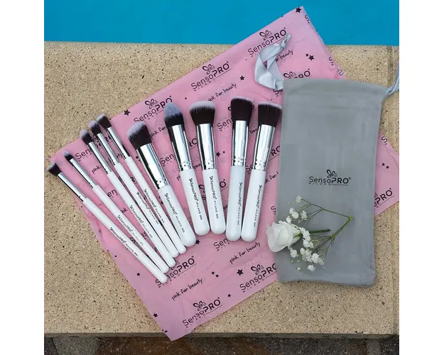 Set 10 Pensule Machiaj Profesionale SensoPRO Milano, Classy White + CADOU
