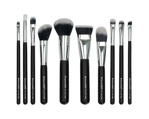 Set 10 pensule machiaj SensoPRO Milano, Black Silver + Borseta Cadou