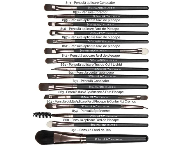 Set 15 Pensule Machiaj Profesionale SensoPRO Milano Travel Black + CADOU iti va transforma complet rutina de make-up! Materialele de calitate superioara te vor ajuta sa iti creezi un machiaj perfect, de fiecare data! Perii sunt rezistenti, fini si ajuta la blenduirea perfecta a produsului de beauty pe piele. Au o textura matasoasa la atingere si nu lasa urme de produs in timp ce lucreaza. Setul contine pensule potrivite unui machiaj complet: 15 de pensule de make-up dintre care 3 pensule duble. Au grija de fiecare etapa a machiajului tau: 853 - Pensula aplicare Concealer 858 - Pensula Corector 855 - Pensula aplicare Fard de Pleoape 856 - Pensula aplicare Fard de Pleoape 857 - Pensula aplicare Fard de Pleoape 862 - Pensula aplicare Fard de Pleoape 852 - Pensula aplicare Fard de Pleoape 861 - Pensula aplicare Tus de Ochi Lichid 854 - Pensula contur Sprancene 851 - Pensula Concealer 863 - Pensula dubla Sprancene & Fard Pleoape 864 - Pensula dubla Aplicare Fard Pleoape & Contur Ruj Cremos 859 - Pensula Sprancene 860 - Pensula aplicare Fard de Pleoape 850 - Pensula Fond de Ten Cu ajutorul Set 15 Pensule Machiaj Profesionale SensoPRO Milano Travel Black + CADOU vei obtine un make-up perfect in fiecare zi, fiecare aplicare fiind fara cusur! Avantaje Pensule SensoPRO Milano Travel: - Cadou Saculet depozitare - Delicate, rezistente - Par natural & sintetic - Manere confortabile din lemn - Calitate garantata - Potrivite pentru machiaj ochi, sprancene, fata, buze Produsul cu denumirea Set 15 Pensule Machiaj Profesionale SensoPRO Milano Travel Black + CADOU face parte din brandul Sensopro milano, se afla in categoria Machiaj si subcategoria
