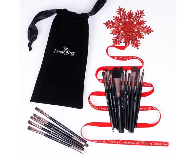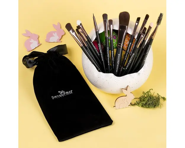 Set 15 Pensule Machiaj Profesionale SensoPRO Milano Travel Black + CADOU