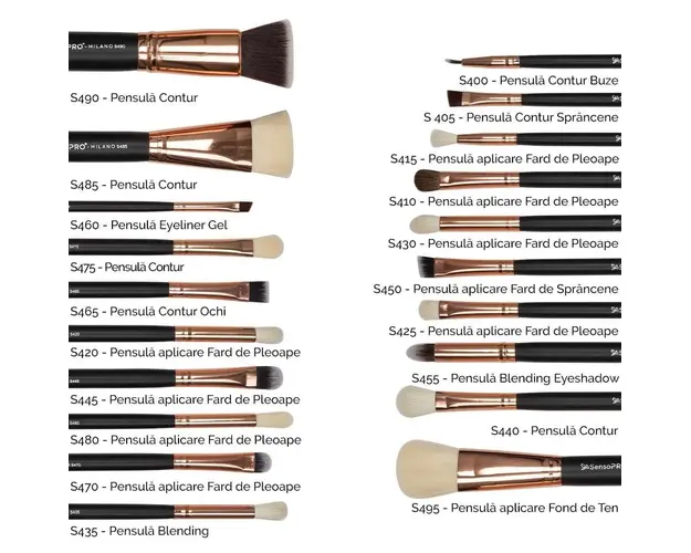 Set 20 pensule machiaj SensoPRO Milano, Golden Choco iti va transforma complet rutina de make-up! Pensulele de calitate superioara te vor ajuta sa iti creezi un machiaj perfect, de fiecare data. Setul Golden Choco contine pensule potrivite unui machiaj complet: 20 de pensule de make-up ce au grija de fiecare etapa a machiajului tau: S400 - Pensula Contur Buze S 405 - Pensula Contur Sprancene S415 - Pensula aplicare Fard de Pleoape S410 - Pensula aplicare Fard de Pleoape S430 - Pensula aplicare Fard de Pleoape S450 - Pensula Sprancene S425 - Pensula aplicare Fard de Pleoape S455 - Pensula Blending Eyeshadow S440 - Pensula Contur S495 - Pensula aplicare Fond de Ten S490 - Pensula Contur S485 - Pensula Contur S460 - Pensula Eyeliner S475 - Pensula Contur S465 - Pensula Contur S420 - Pensula aplicare Fard de Pleoape S445 - Pensula aplicare Fard de Pleoape S480 - Pensula aplicare Fard de Pleoape S470 - Pensula aplicare Fard de Pleoape S435 - Pensula Blending Cu ajutorul Set 20 pensule machiaj SensoPRO Milano, Golden Choco vei obtine un make-up perfect in fiecare zi, fiecare aplicare fiind fara cusur! Perii sunt rezistenti, fini si ajuta la blenduirea perfecta a produsului de beauty pe piele. Au o textura matasoasa la atingere si nu lasa urme de produs in timp ce lucreaza. Avantaje Pensule SensoPRO Milano: - Delicate, rezistente - Par natural & sintetic - Manere confortabile din lemn - Calitate garantata - Potrivite pentru machiaj ochi, sprancene, fata, buze CADOURI: - Borseta depozitare pentru pensule Produsul cu denumirea Set 20 pensule machiaj SensoPRO Milano, Golden Choco face parte din brandul Sensopro milano, se afla in categoria Machiaj si subcategoria