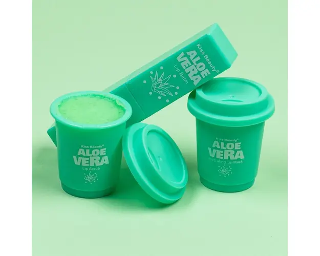 Set 3 in 1 Lip Scrub & Lip Mask & Lip Balm Kiss Beauty, Aloe Vera
