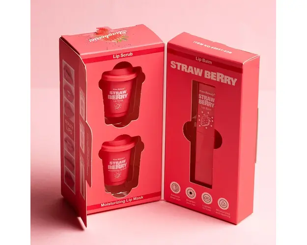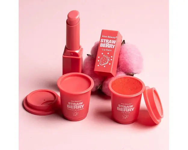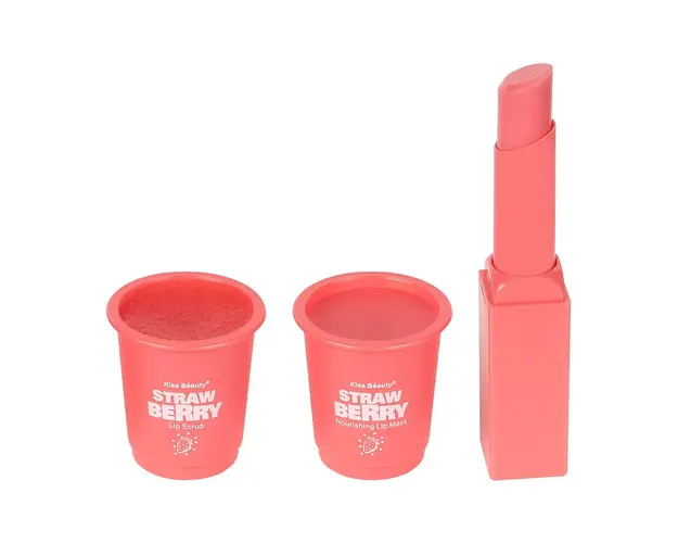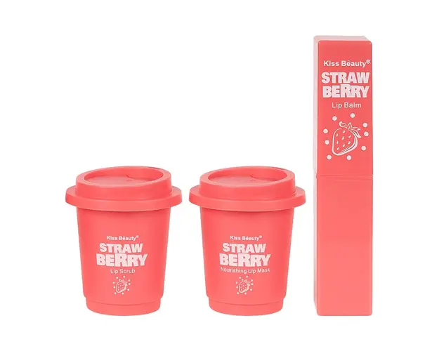 Set 3 in 1 Lip Scrub & Lip Mask & Lip Balm Kiss Beauty, Strawberry